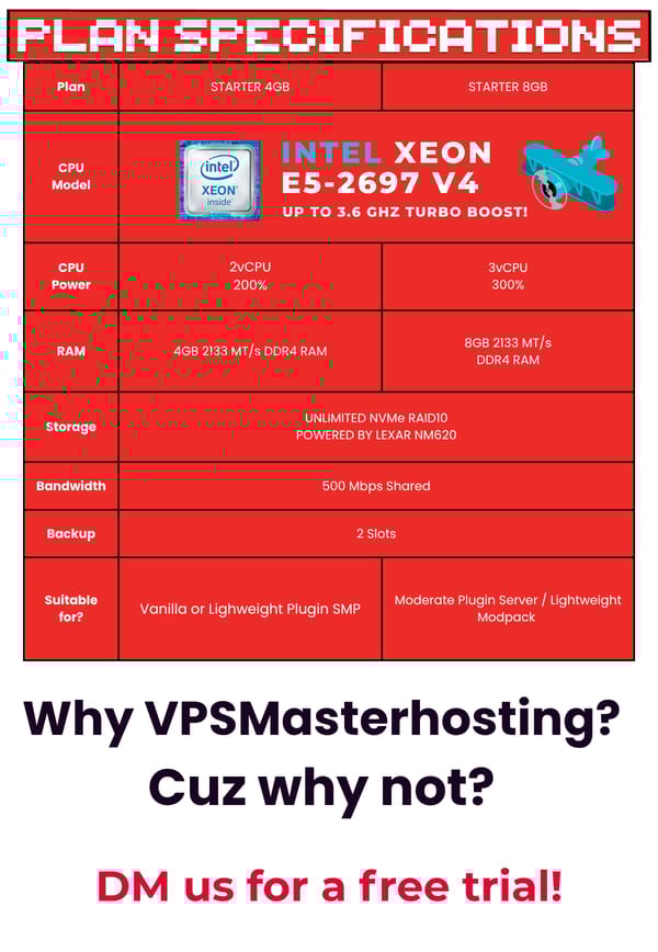 5. I see that Minecraft Starter Plan and Minecraft Pro Plan both comes with the similar 2 vCPU and 4/6GB RAM. What's the difference?